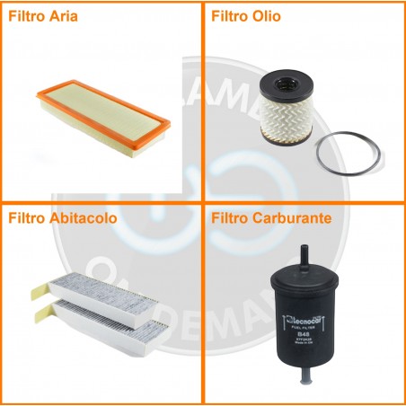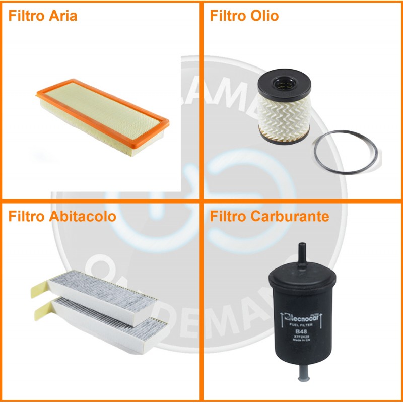 ComposizioneFiltro benzina, Filtro olio, Filtro abitacolo ai carboni attivi, Filtro aria