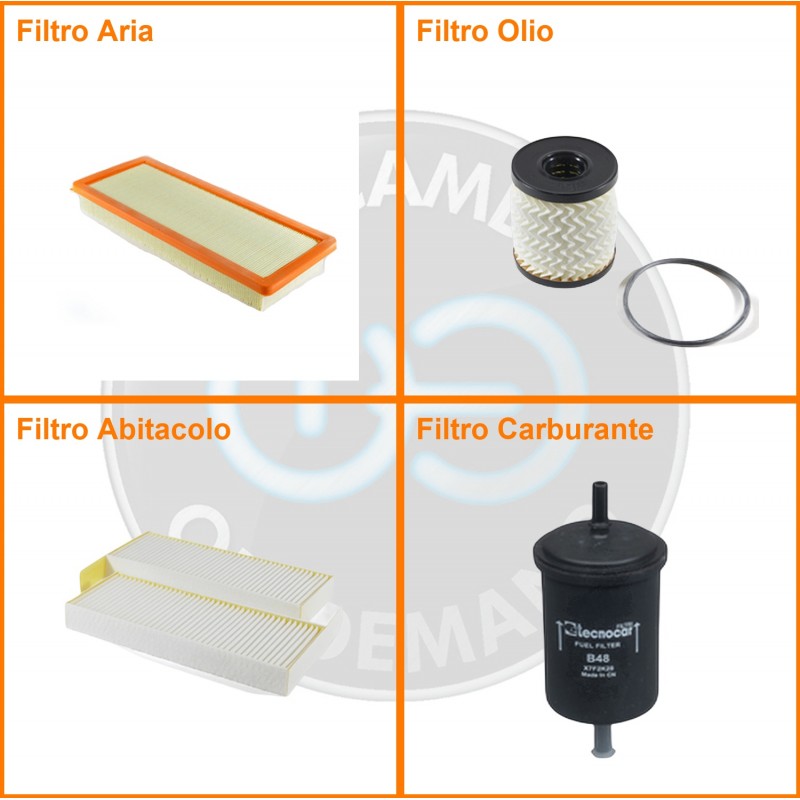 ComposizioneFiltro abitacolo, Filtro aria, Filtro benzina, Filtro olio