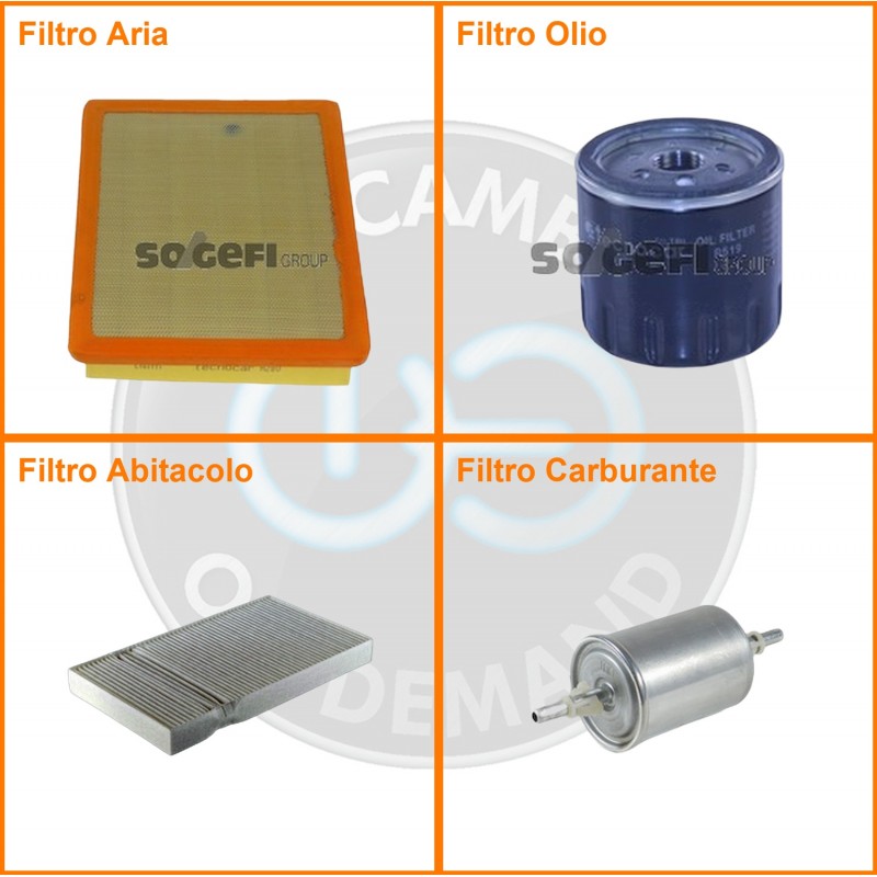 ComposizioneFiltro benzina, Filtro olio, Filtro abitacolo, Filtro aria