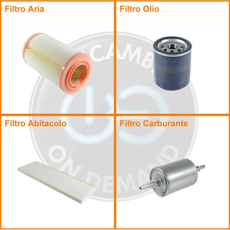 ComposizioneFiltro benzina, Filtro olio, Filtro abitacolo, Filtro aria