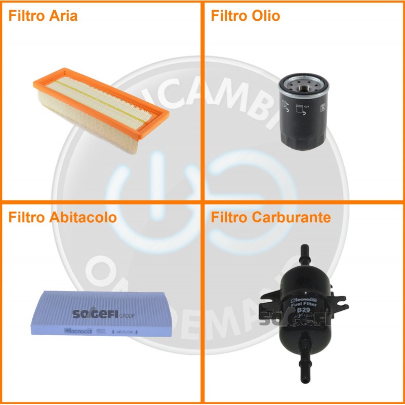 ComposizioneFiltro olio, Filtro abitacolo, Filtro aria, Filtro benzina