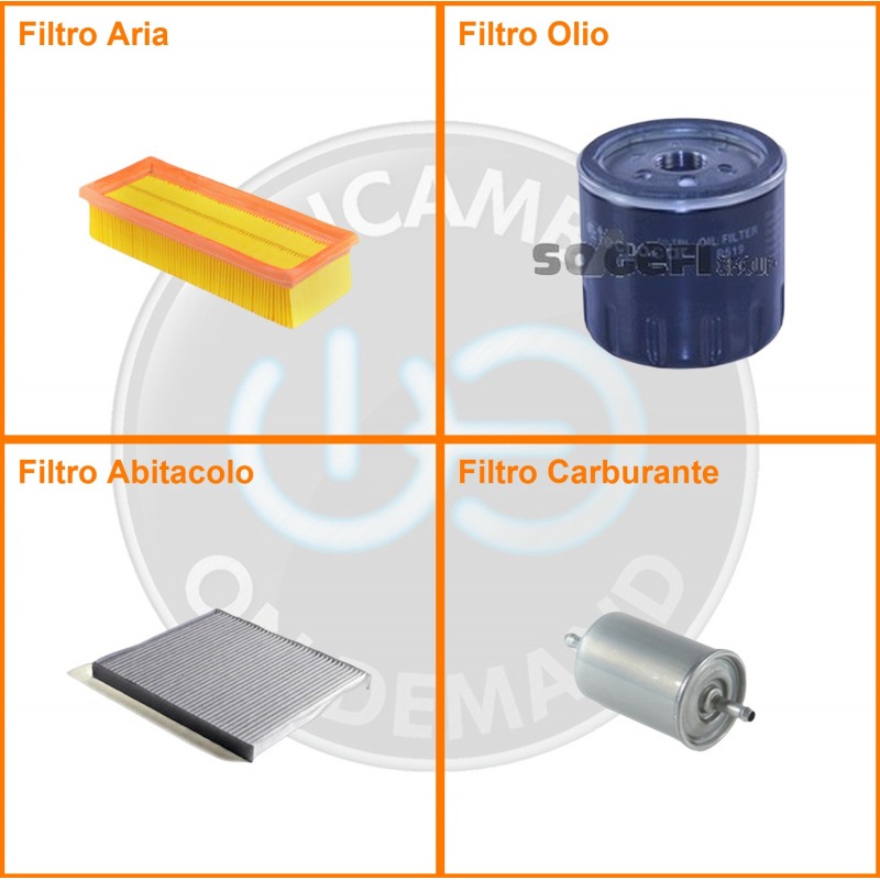 ComposizioneFiltro benzina, Filtro olio, Filtro abitacolo ai carboni attivi, Filtro aria