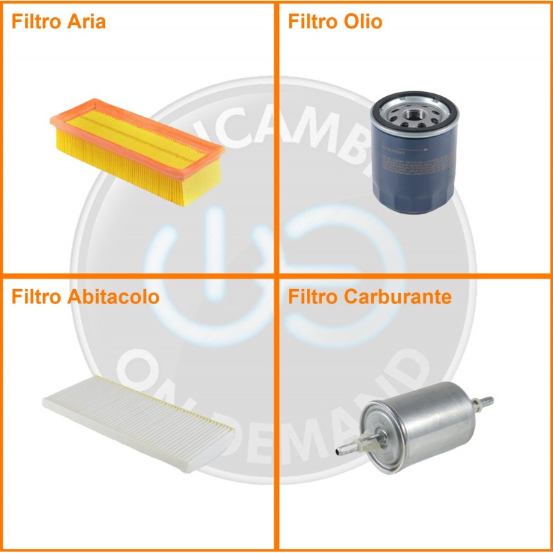 ComposizioneFiltro olio, Filtro abitacolo, Filtro aria, Filtro benzina