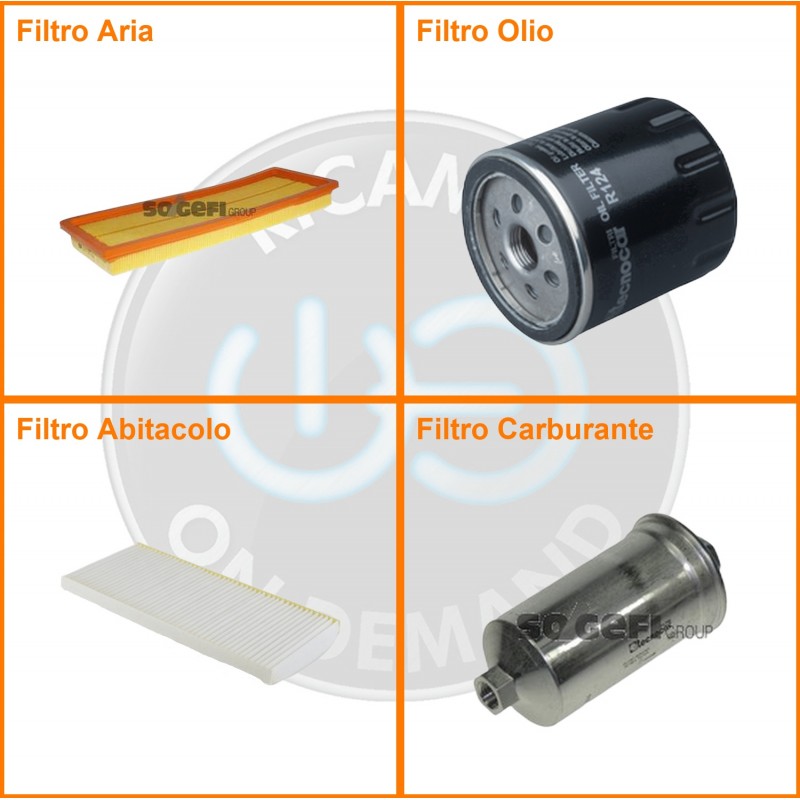 ComposizioneFiltro benzina, Filtro olio, Filtro abitacolo, Filtro aria