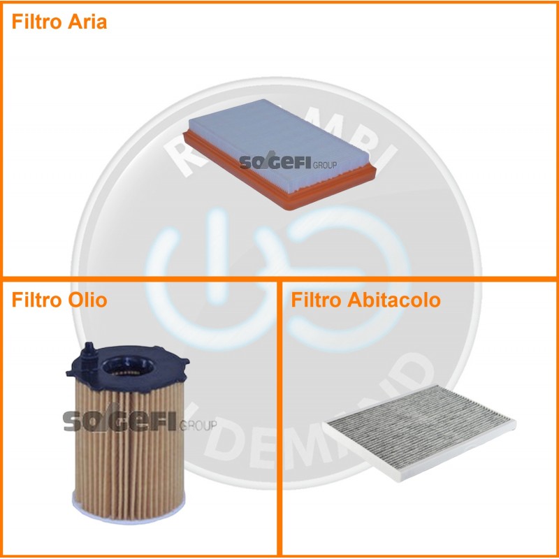 ComposizioneFiltro olio, Filtro abitacolo ai carboni attivi, Filtro aria