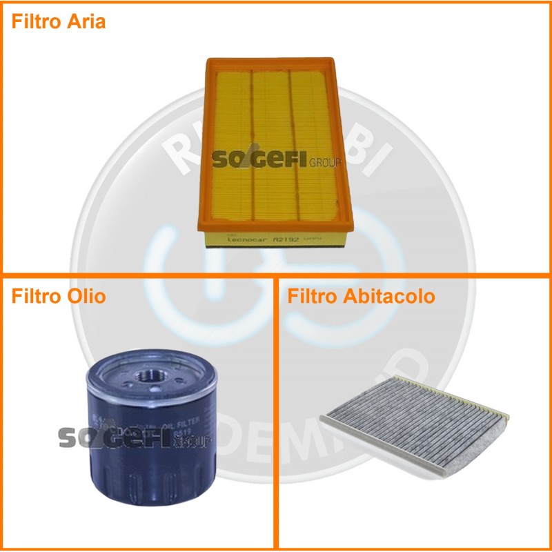ComposizioneFiltro olio, Filtro abitacolo ai carboni attivi, Filtro aria