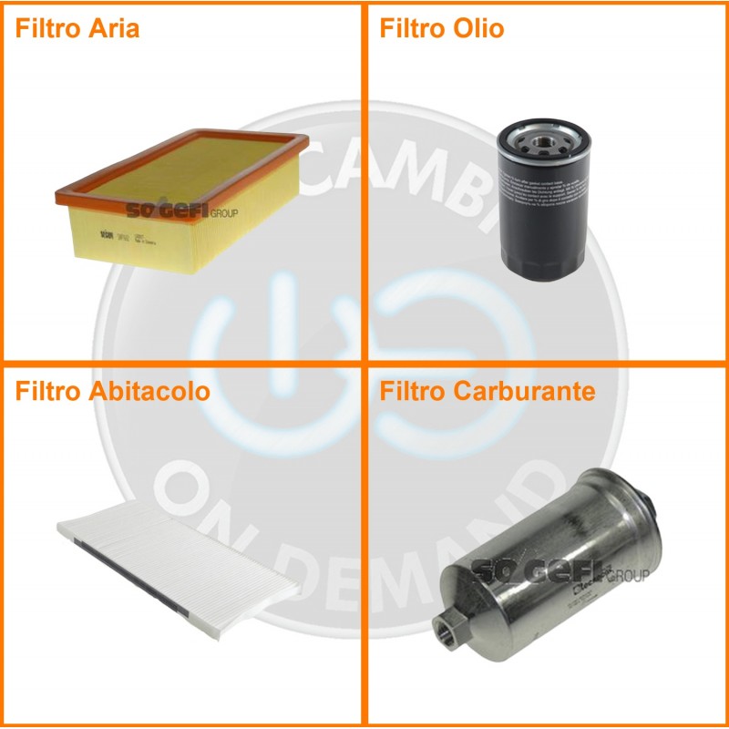 ComposizioneFiltro benzina, Filtro olio, Filtro abitacolo, Filtro aria