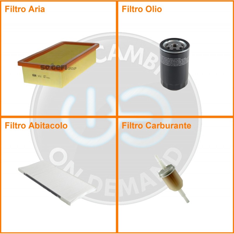 ComposizioneFiltro olio, Filtro abitacolo, Filtro aria, Filtro benzina