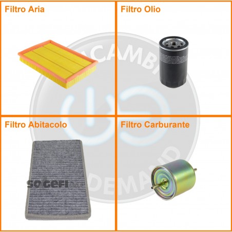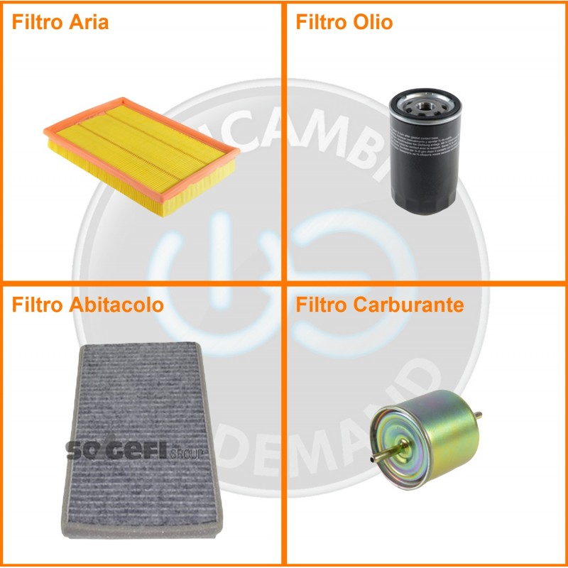 ComposizioneFiltro abitacolo ai carboni attivi, Filtro aria, Filtro benzina, Filtro olio