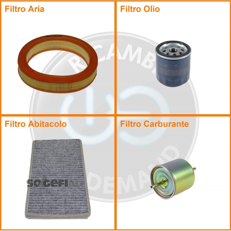 ComposizioneFiltro abitacolo ai carboni attivi, Filtro aria, Filtro benzina, Filtro olio