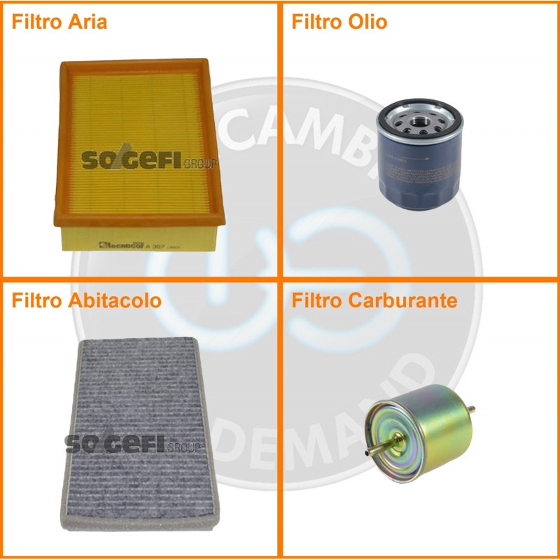 ComposizioneFiltro abitacolo ai carboni attivi, Filtro aria, Filtro benzina, Filtro olio