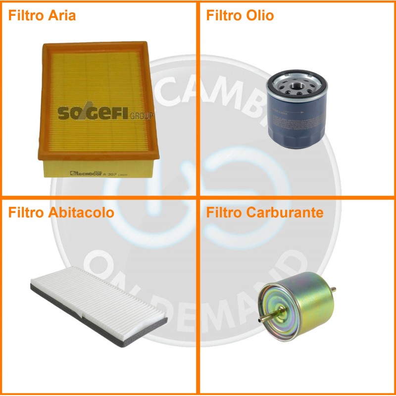 ComposizioneFiltro benzina, Filtro olio, Filtro abitacolo, Filtro aria