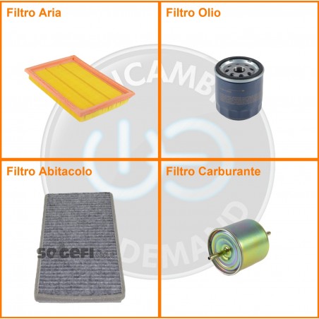ComposizioneFiltro abitacolo ai carboni attivi, Filtro aria, Filtro benzina, Filtro olio