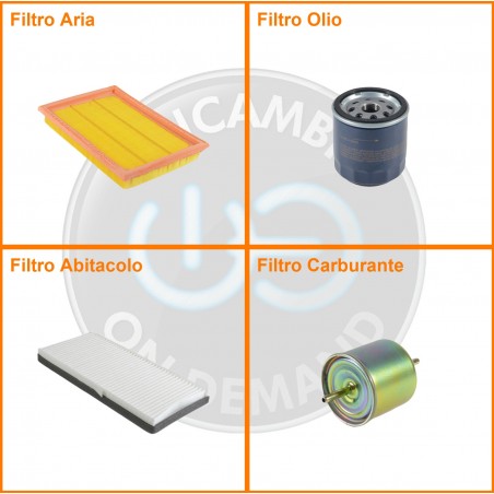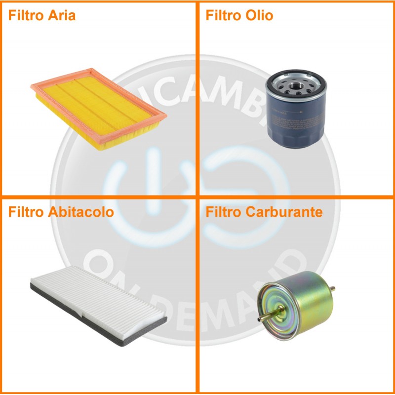 ComposizioneFiltro benzina, Filtro olio, Filtro abitacolo, Filtro aria