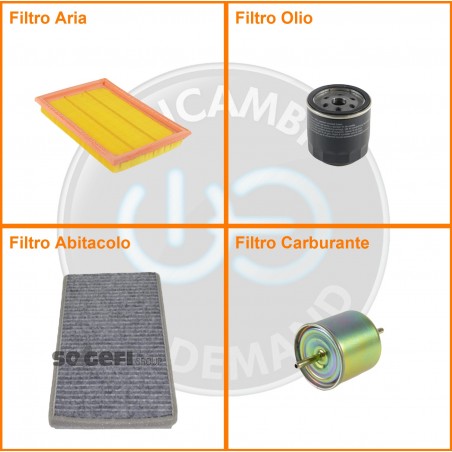 ComposizioneFiltro benzina, Filtro olio, Filtro abitacolo ai carboni attivi, Filtro aria