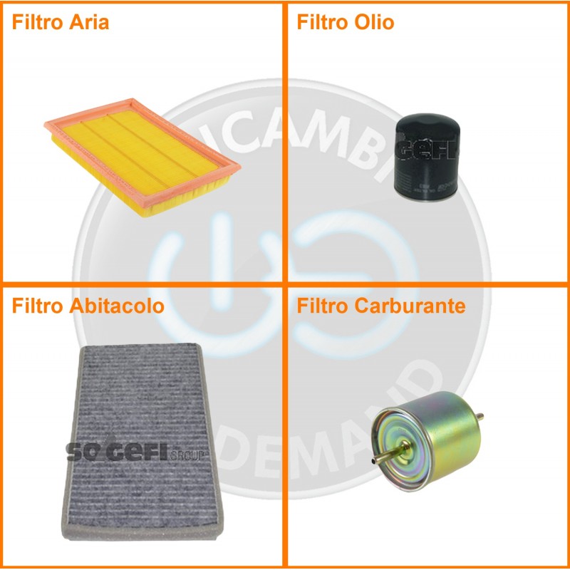 ComposizioneFiltro olio, Filtro abitacolo ai carboni attivi, Filtro aria, Filtro benzina