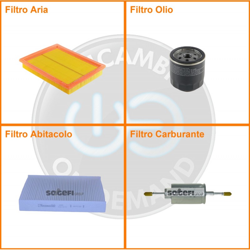 ComposizioneFiltro benzina, Filtro olio, Filtro abitacolo, Filtro aria