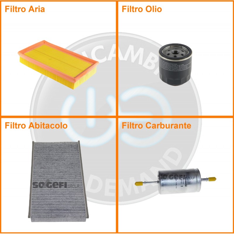 ComposizioneFiltro olio, Filtro abitacolo ai carboni attivi, Filtro aria, Filtro benzina