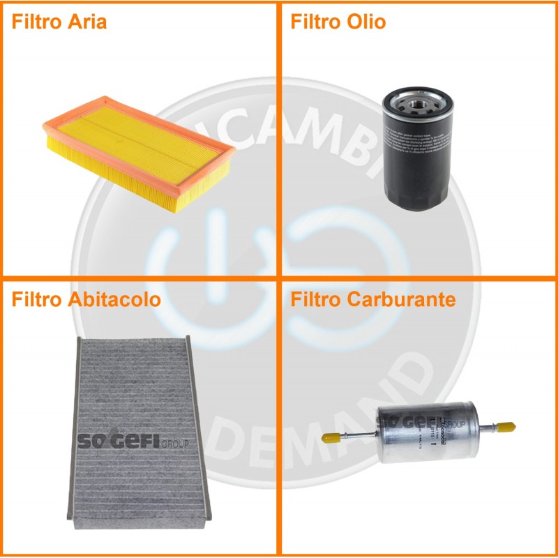 ComposizioneFiltro benzina, Filtro olio, Filtro abitacolo ai carboni attivi, Filtro aria
