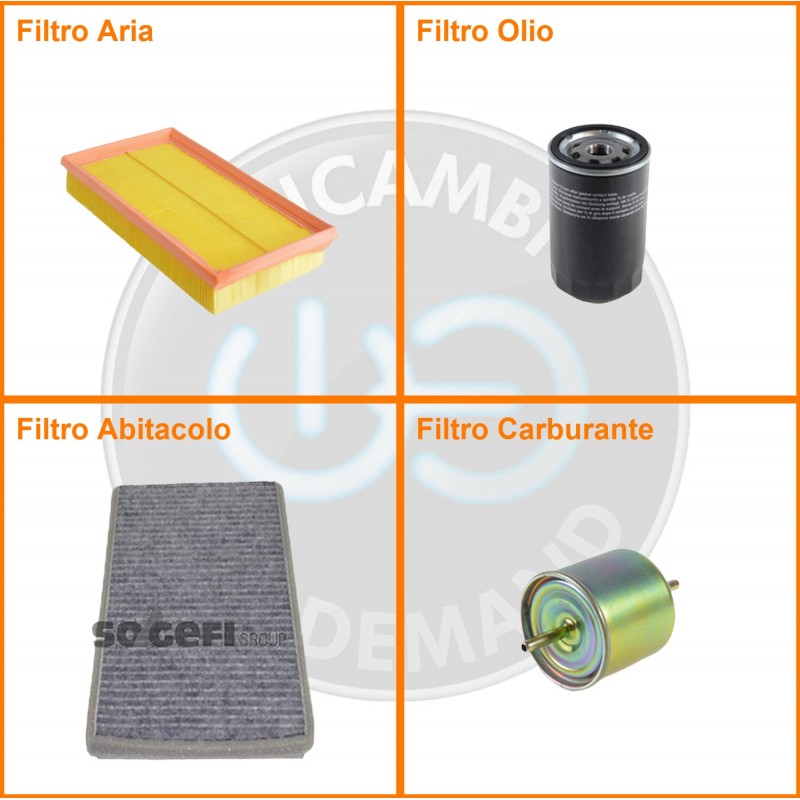 ComposizioneFiltro abitacolo ai carboni attivi, Filtro aria, Filtro benzina, Filtro olio
