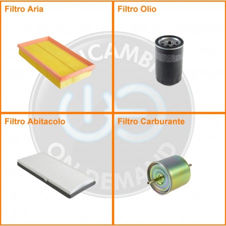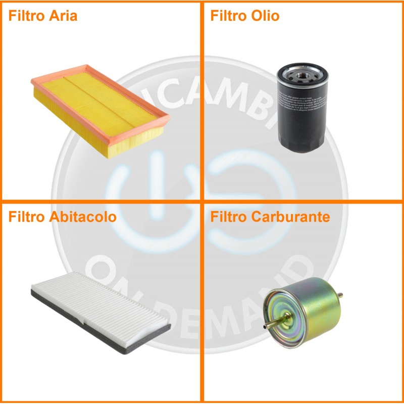 ComposizioneFiltro benzina, Filtro olio, Filtro abitacolo, Filtro aria
