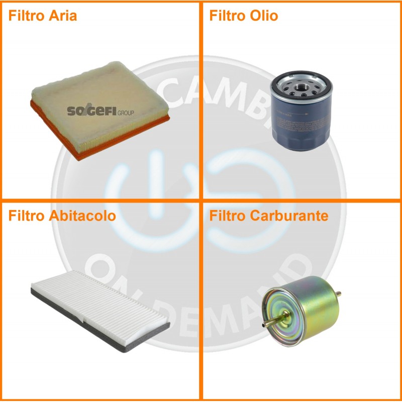 ComposizioneFiltro benzina, Filtro olio, Filtro abitacolo, Filtro aria