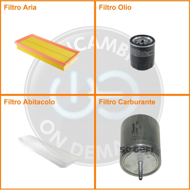 ComposizioneFiltro benzina, Filtro olio, Filtro abitacolo, Filtro aria