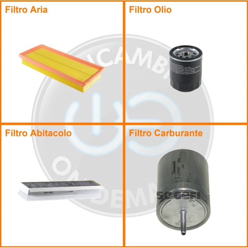 ComposizioneFiltro aria, Filtro benzina, Filtro olio, Filtro abitacolo ai carboni attivi