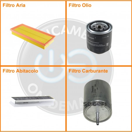 ComposizioneFiltro aria, Filtro benzina, Filtro olio, Filtro abitacolo ai carboni attivi