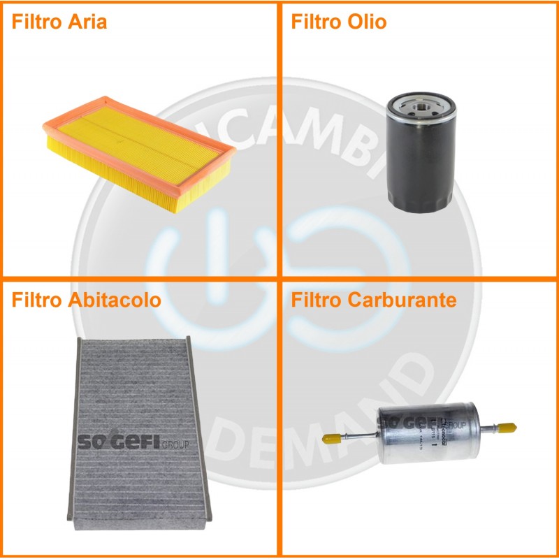 ComposizioneFiltro benzina, Filtro olio, Filtro abitacolo ai carboni attivi, Filtro aria