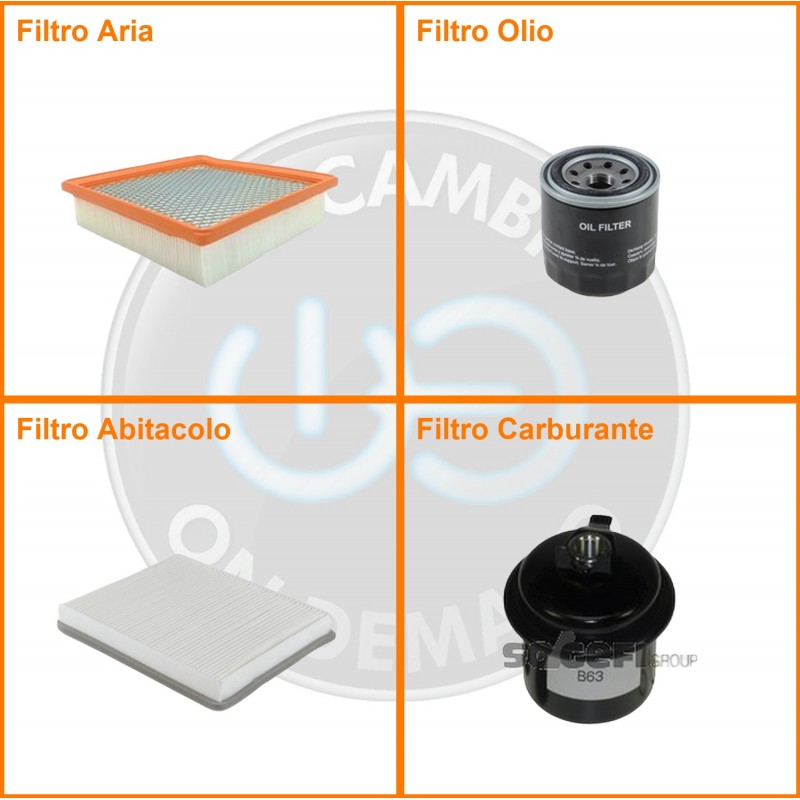 ComposizioneFiltro abitacolo, Filtro aria, Filtro benzina, Filtro olio