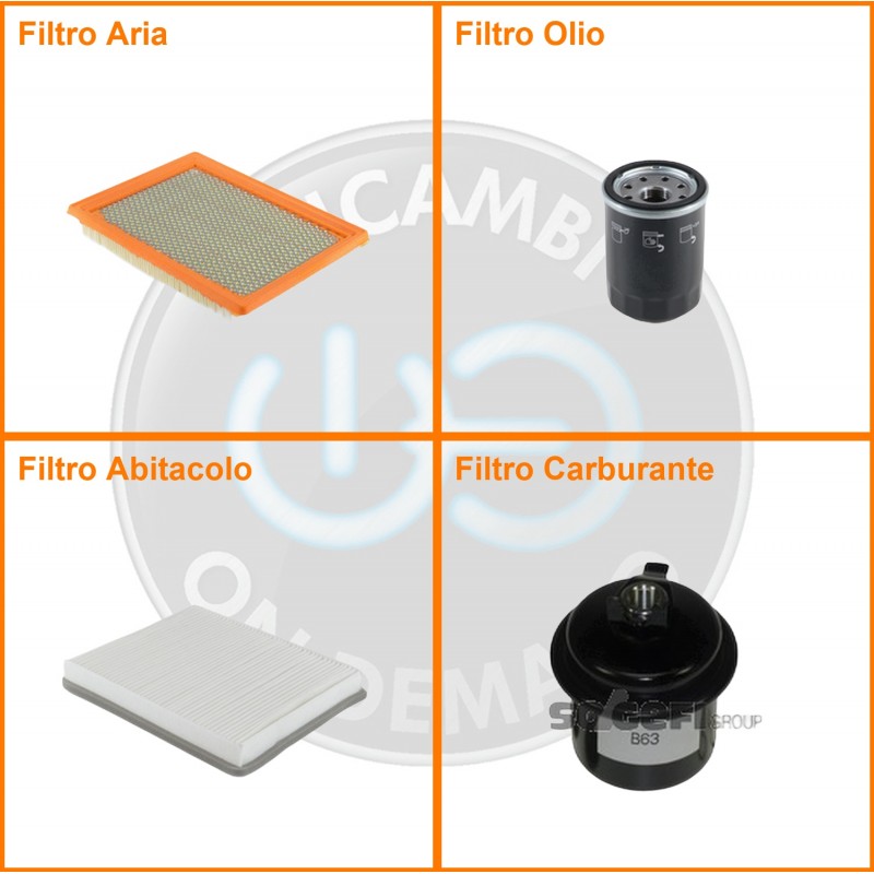 ComposizioneFiltro abitacolo, Filtro aria, Filtro benzina, Filtro olio