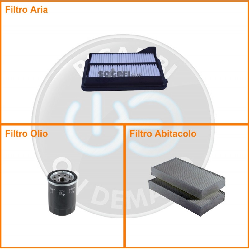 ComposizioneFiltro abitacolo, Filtro aria, Filtro olio