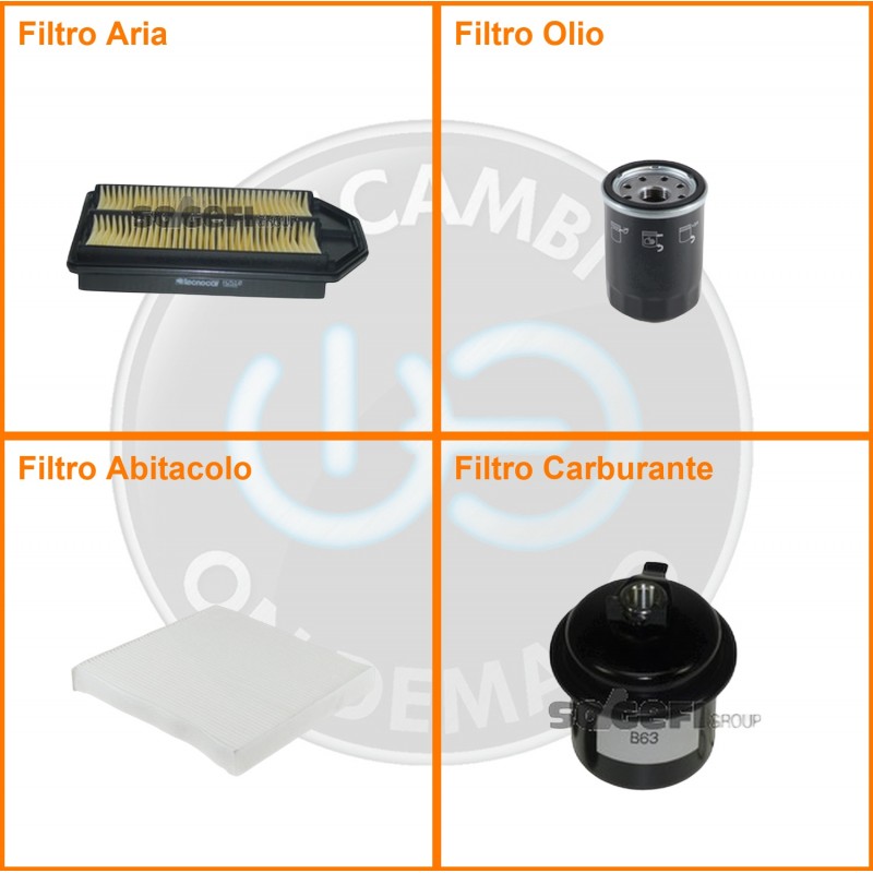 ComposizioneFiltro benzina, Filtro olio, Filtro abitacolo, Filtro aria