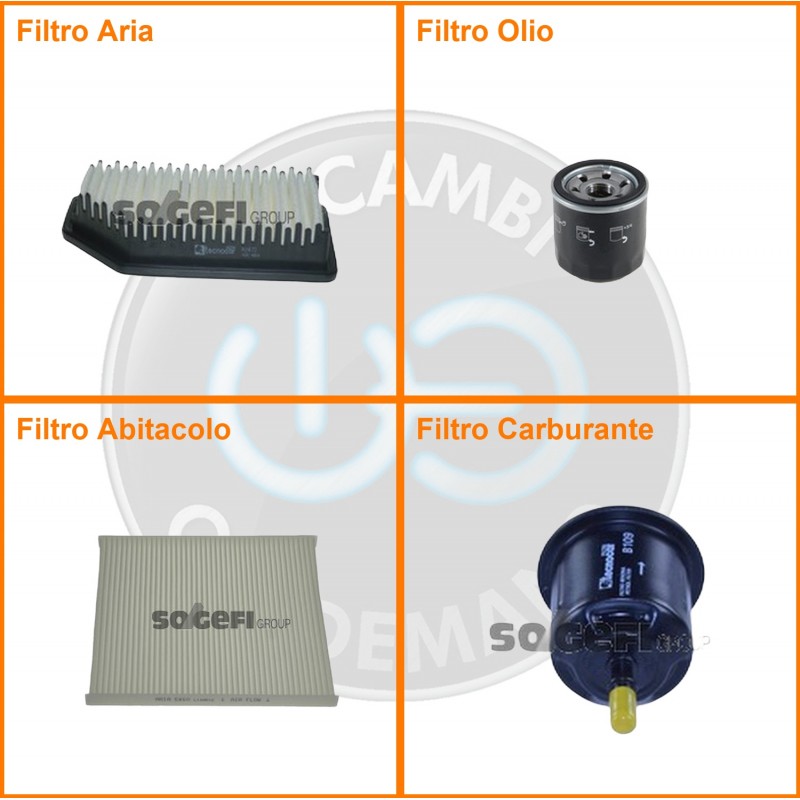 ComposizioneFiltro abitacolo, Filtro aria, Filtro benzina, Filtro olio