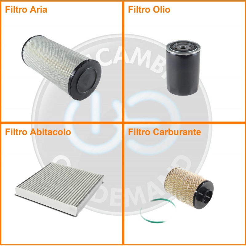 ComposizioneFiltro abitacolo ai carboni attivi, Filtro aria, Filtro gasolio, Filtro olio