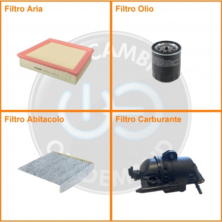 ComposizioneFiltro gasolio, Filtro olio, Filtro abitacolo ai carboni attivi, Filtro aria