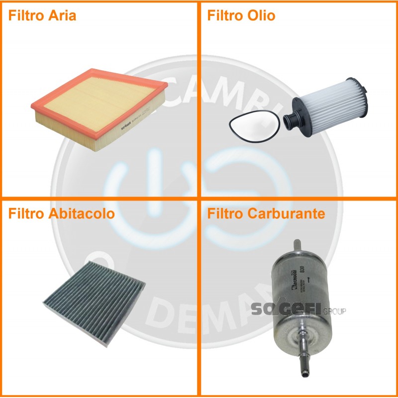 ComposizioneFiltro abitacolo ai carboni attivi, Filtro aria, Filtro benzina, Filtro olio