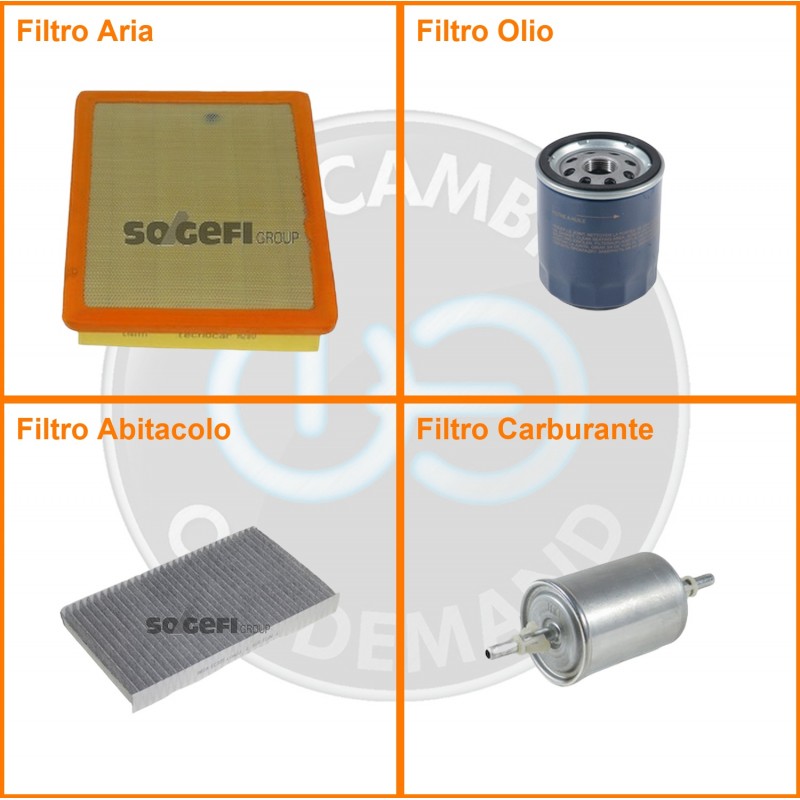 ComposizioneFiltro abitacolo ai carboni attivi, Filtro aria, Filtro benzina, Filtro olio