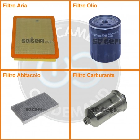 ComposizioneFiltro abitacolo ai carboni attivi, Filtro aria, Filtro benzina, Filtro olio