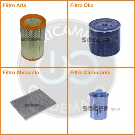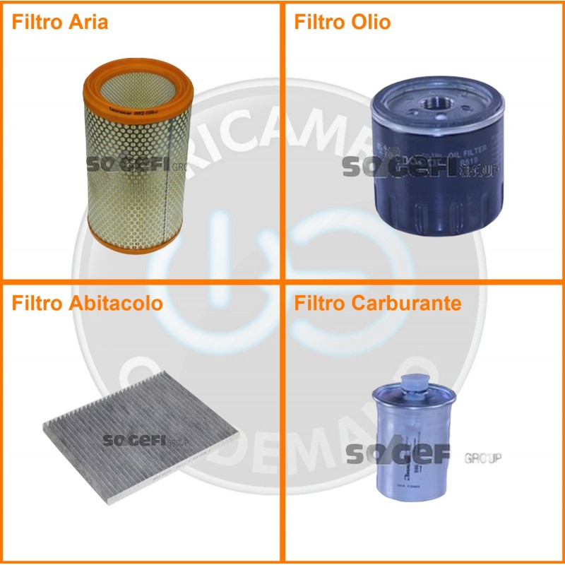 ComposizioneFiltro abitacolo ai carboni attivi, Filtro aria, Filtro benzina, Filtro olio