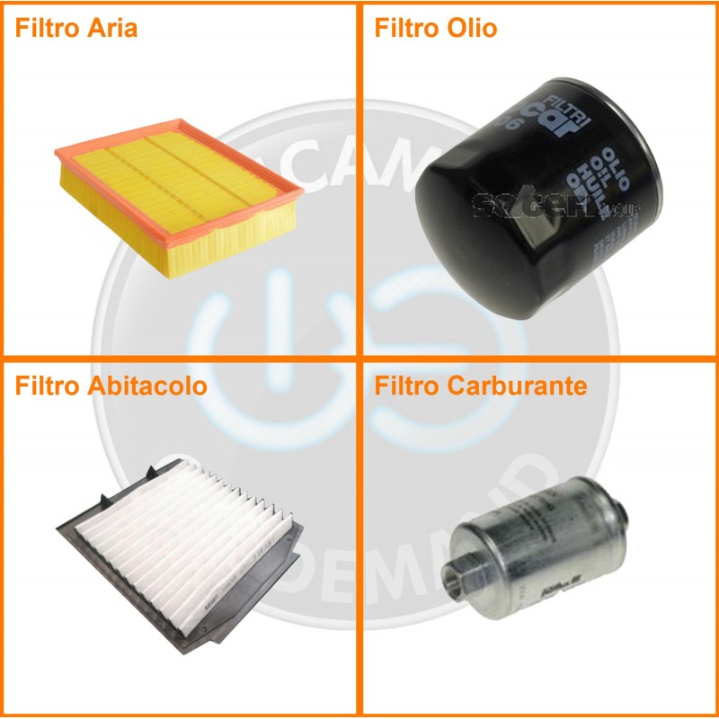 ComposizioneFiltro benzina, Filtro olio, Filtro abitacolo, Filtro aria