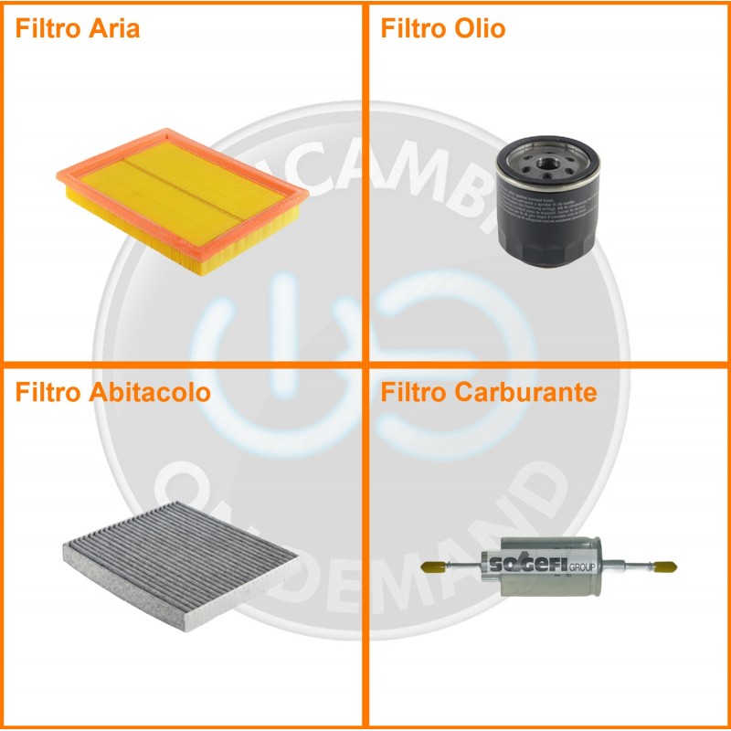 ComposizioneFiltro benzina, Filtro olio, Filtro abitacolo ai carboni attivi, Filtro aria