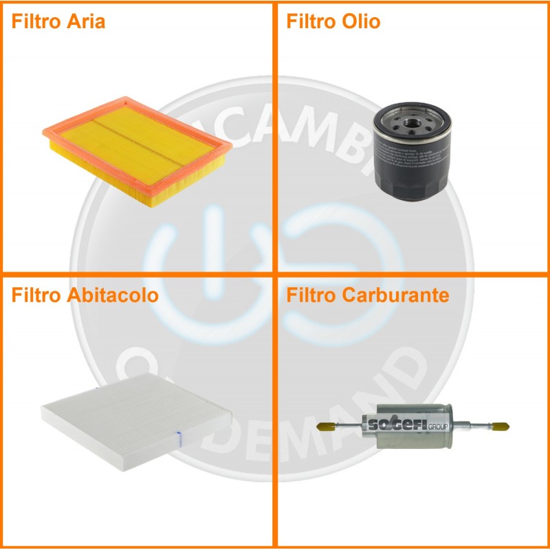 ComposizioneFiltro abitacolo, Filtro aria, Filtro benzina, Filtro olio
