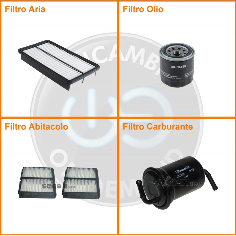 ComposizioneFiltro benzina, Filtro olio, Filtro abitacolo, Filtro aria