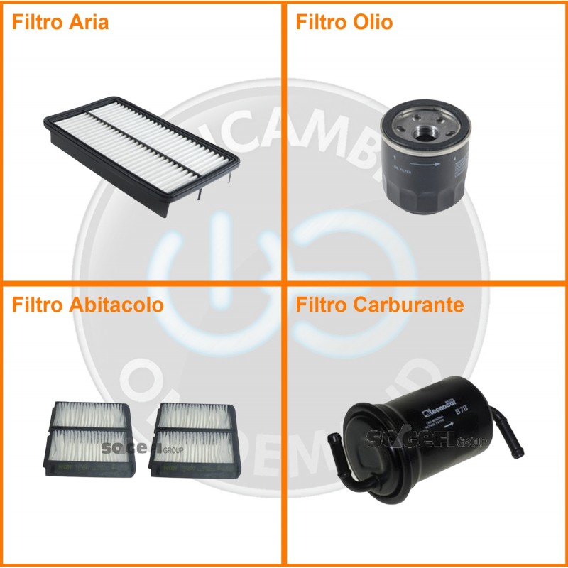 ComposizioneFiltro abitacolo, Filtro aria, Filtro benzina, Filtro olio