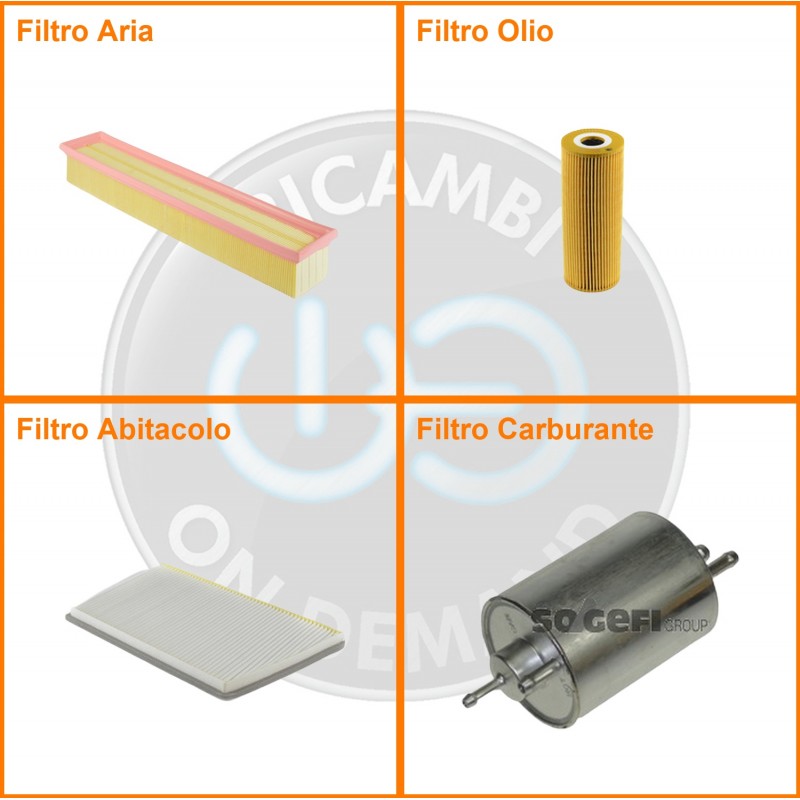 ComposizioneFiltro benzina, Filtro olio, Filtro abitacolo, Filtro aria