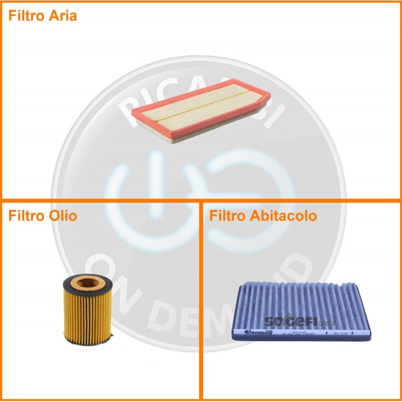 ComposizioneFiltro olio, Filtro abitacolo ai carboni attivi, Filtro aria