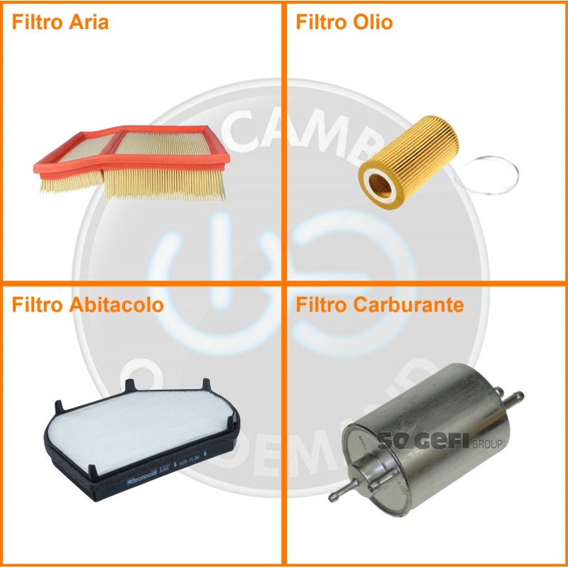 ComposizioneFiltro benzina, Filtro olio, Filtro abitacolo, Filtro aria