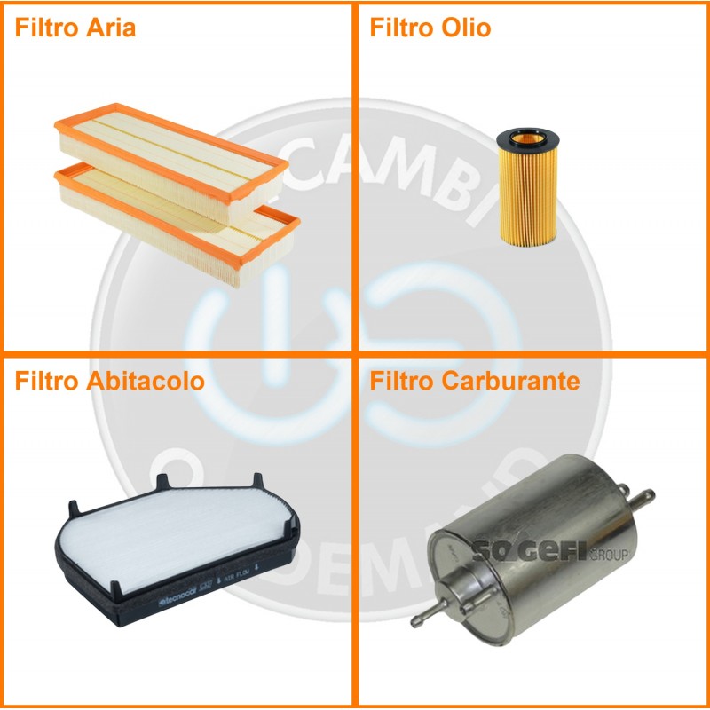ComposizioneFiltro aria, Filtro benzina, Filtro olio, Filtro abitacolo